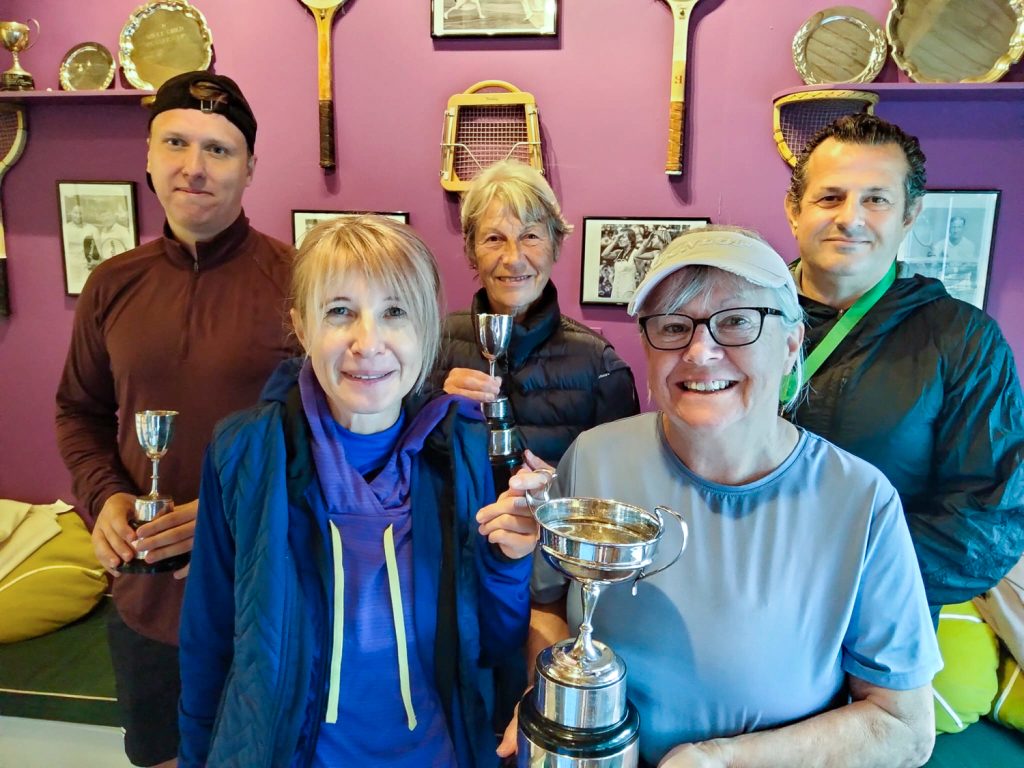 Daphne Lunnon and John Stone were scheduled to play Caroline White and Adrian Olver in the Mixed Doubles Plate, but due to John’s earlier fall, they had to concede the match, giving the win to Caroline and Adrian. The Men’s Singles Plate was won by Andy Constantinou in a walkover after his opponent pulled out before the match.
